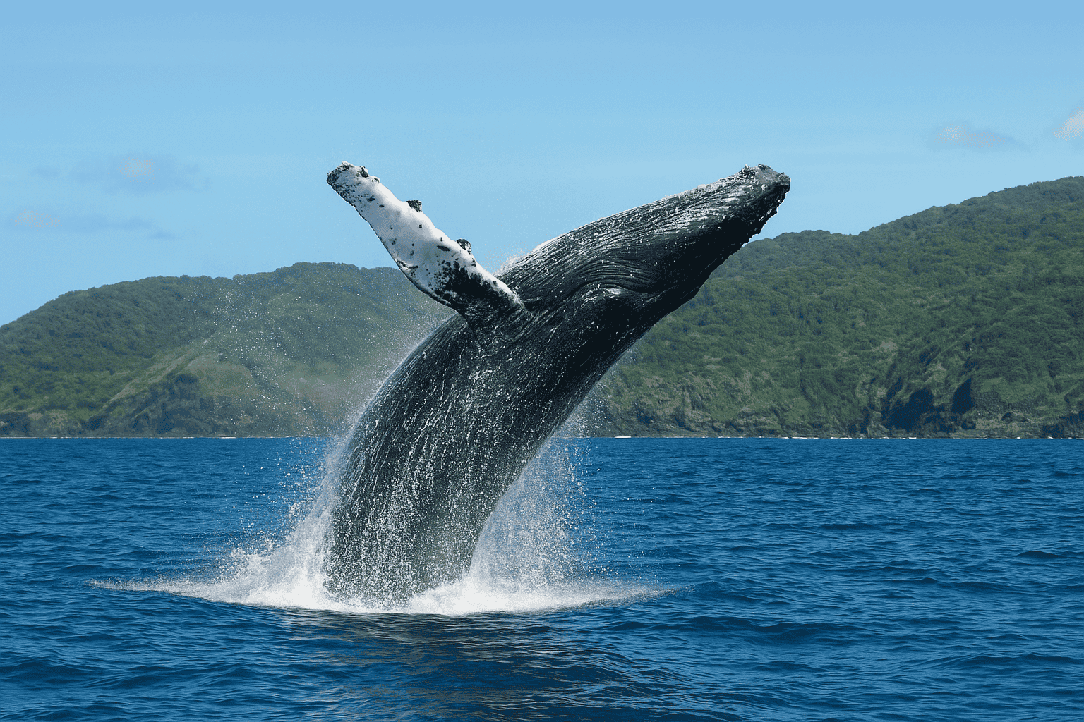 Spot blue whales, sperm whales, and dolphins in their natural habitat (Nov–April).